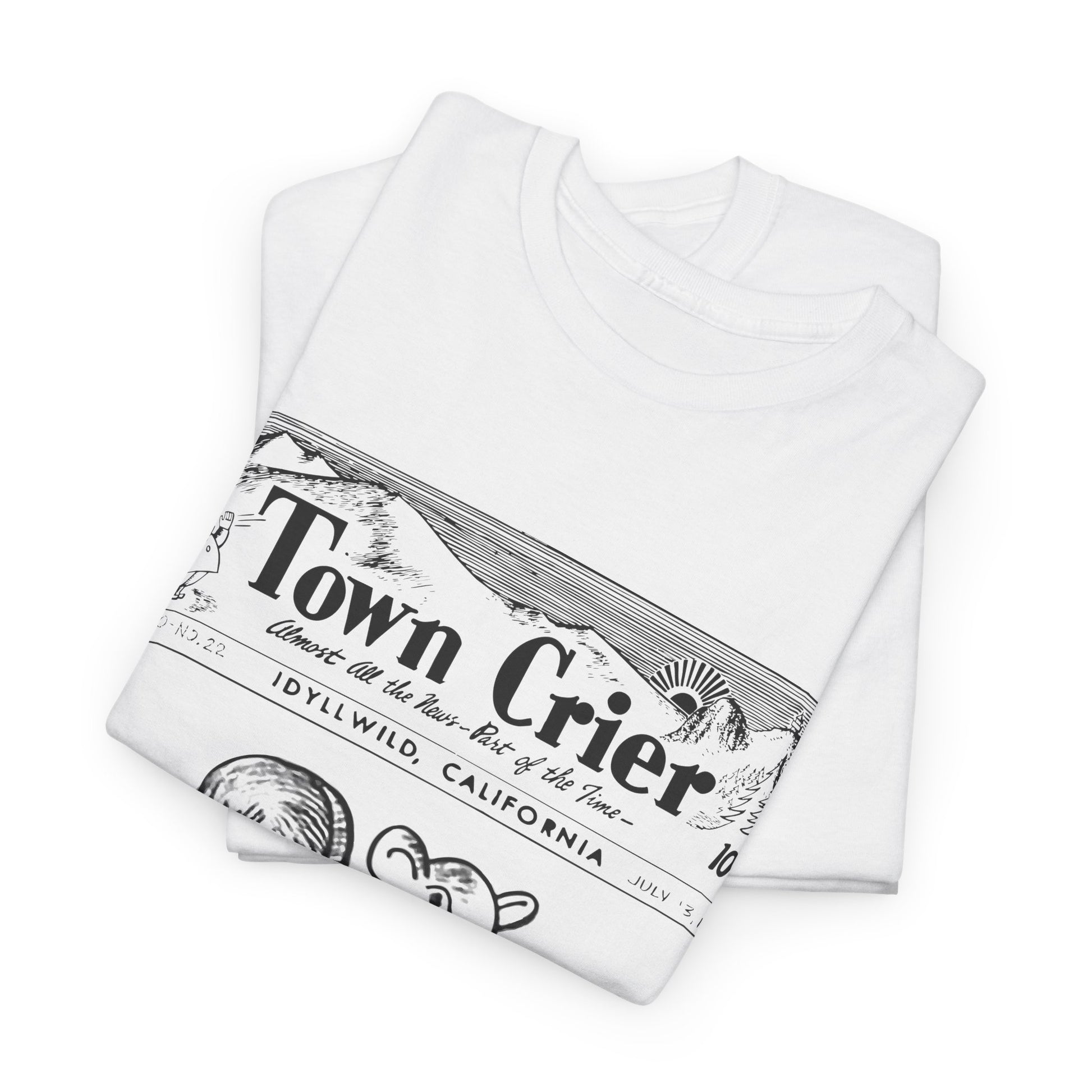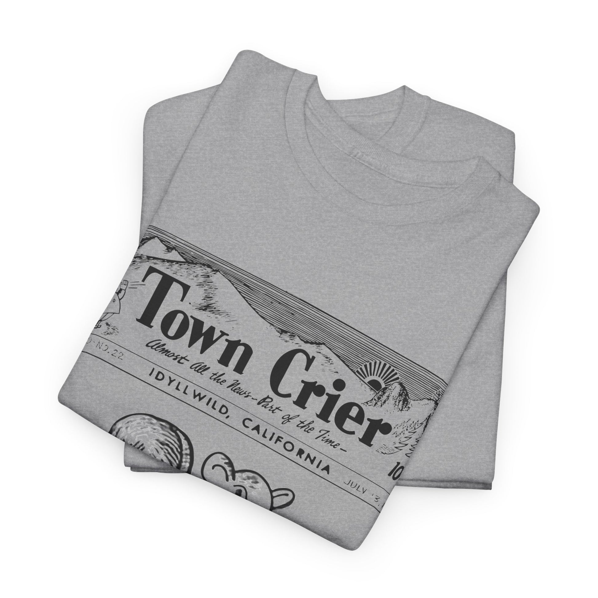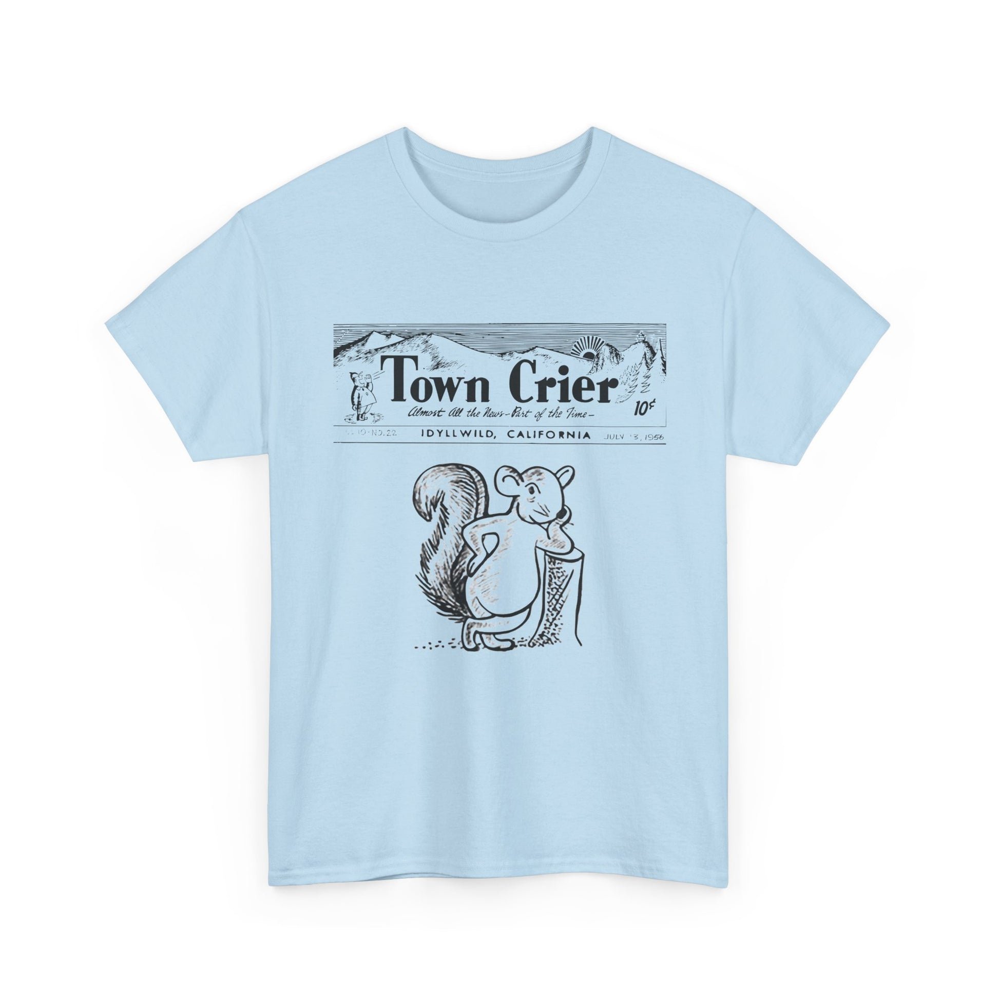 This soft, sturdy tee carries a hand-drawn, vintage-inspired vibe — a sketched squirrel perched on a stump beneath an old-timey "Town Crier" banner. Lightweight yet durable cotton sits close to the skin without clinging, so the illustration reads clearly and ages well. Wear it to local markets, park strolls, or coffee-shop sketch sessions; it feels like a quiet nod to slow weekends, small-town charm, and artists who love subtle, storybook details. The neutral white canvas keeps the artwork as the focal point, while the classic crew cut and relaxed fit make it easy to layer under jackets or pair with well-worn jeans.