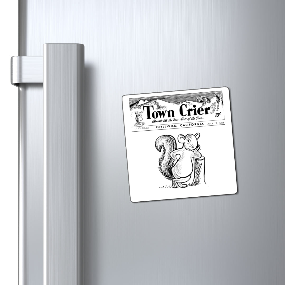 Town Crier vintage newspaper squirrel Magnet | Idyllwild California souvenir
